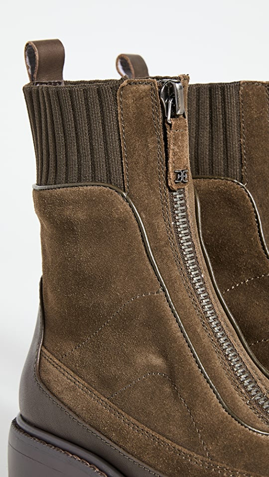 - The Sam Edelman Leone ankle boots combine a sleek leather structure with a convenient front zipper, making them both fashionable and functional.