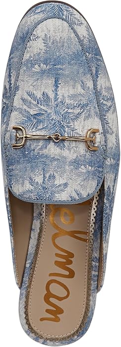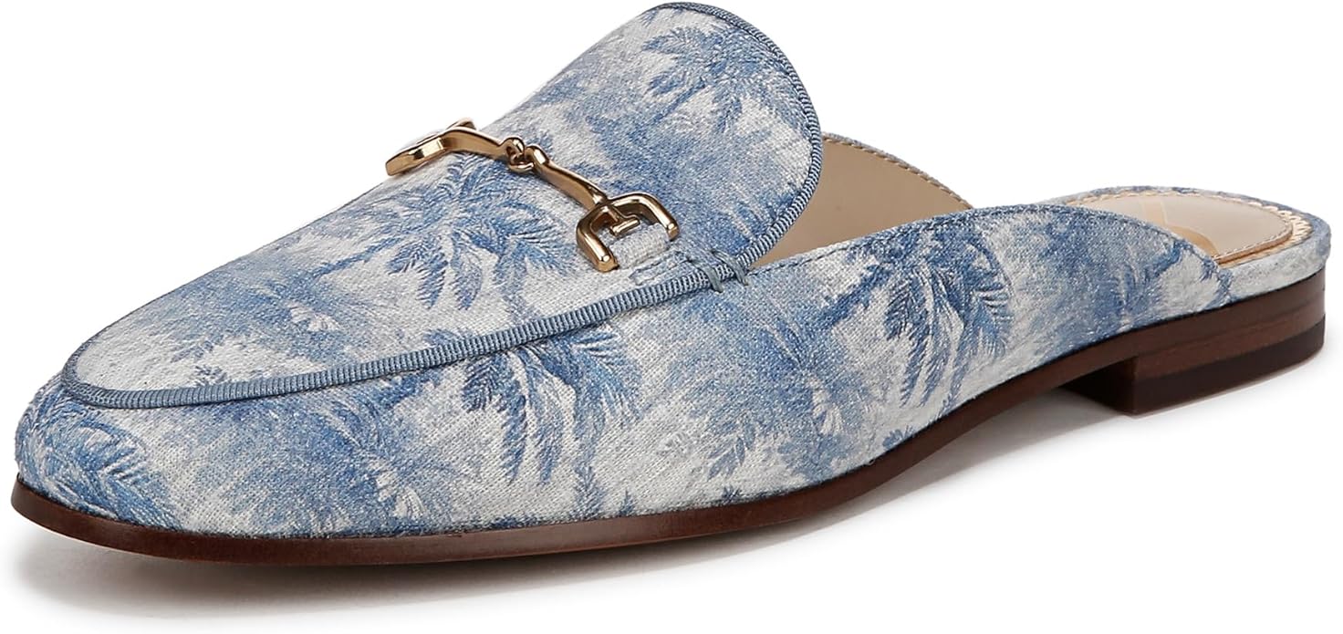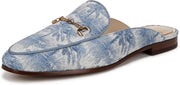 Sam Edelman Linnie Blue Palm Multi Chain Embellished Slip On Almond Toe Mules