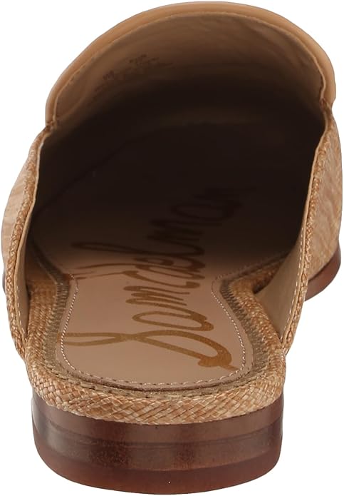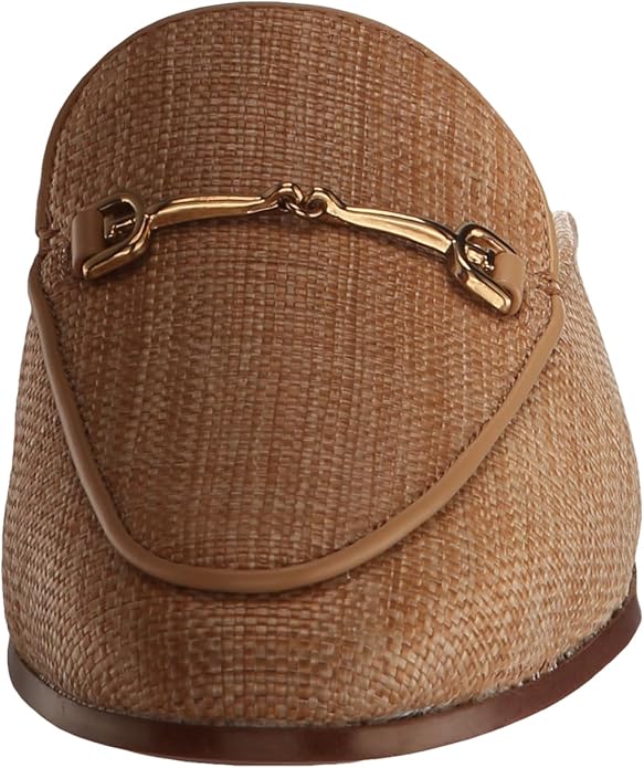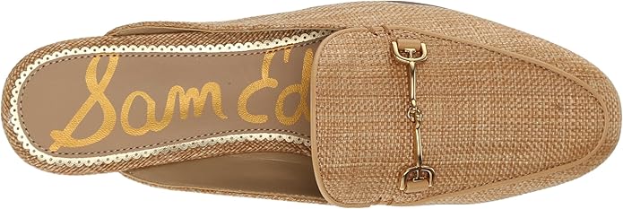 Sam Edelman Linnie Buff Tan Slip On Rounded Toe Chain Detail Wide Fashion Mules