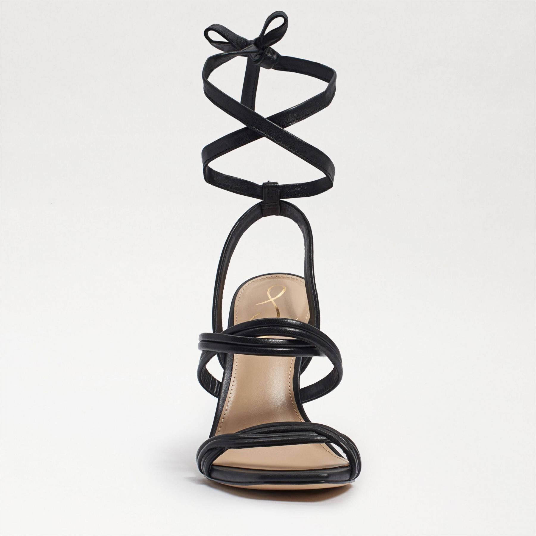 Sam Edelman Lonnie Black Leather Spool Heel Squared Toe Tie Up Heeled Sandals