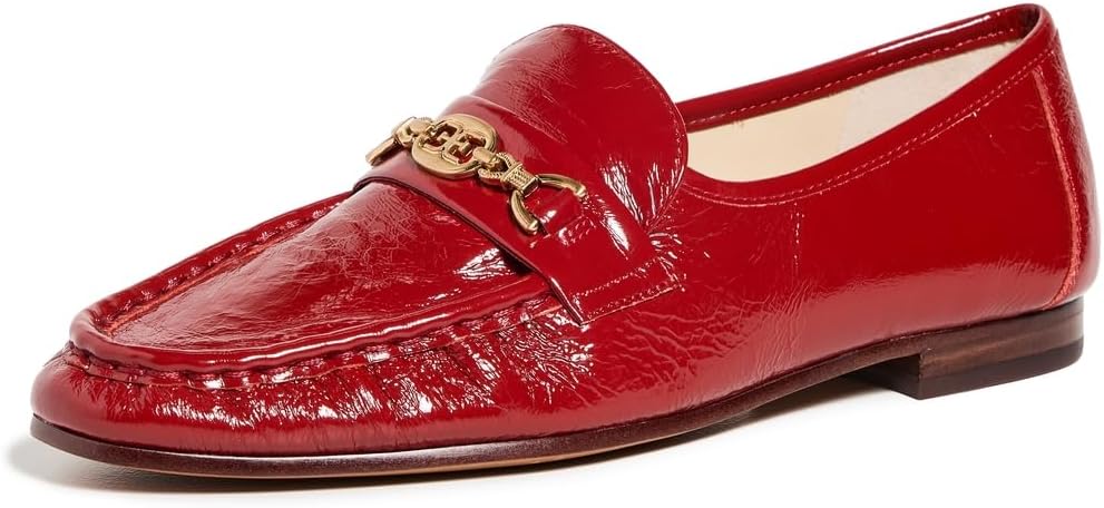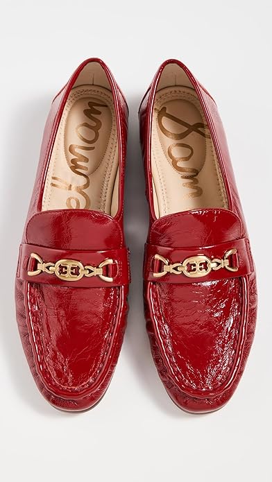 Sam Edelman Lucca Deep Scarlet Almond Toe Slip On Stacked Heel Dress Loafers