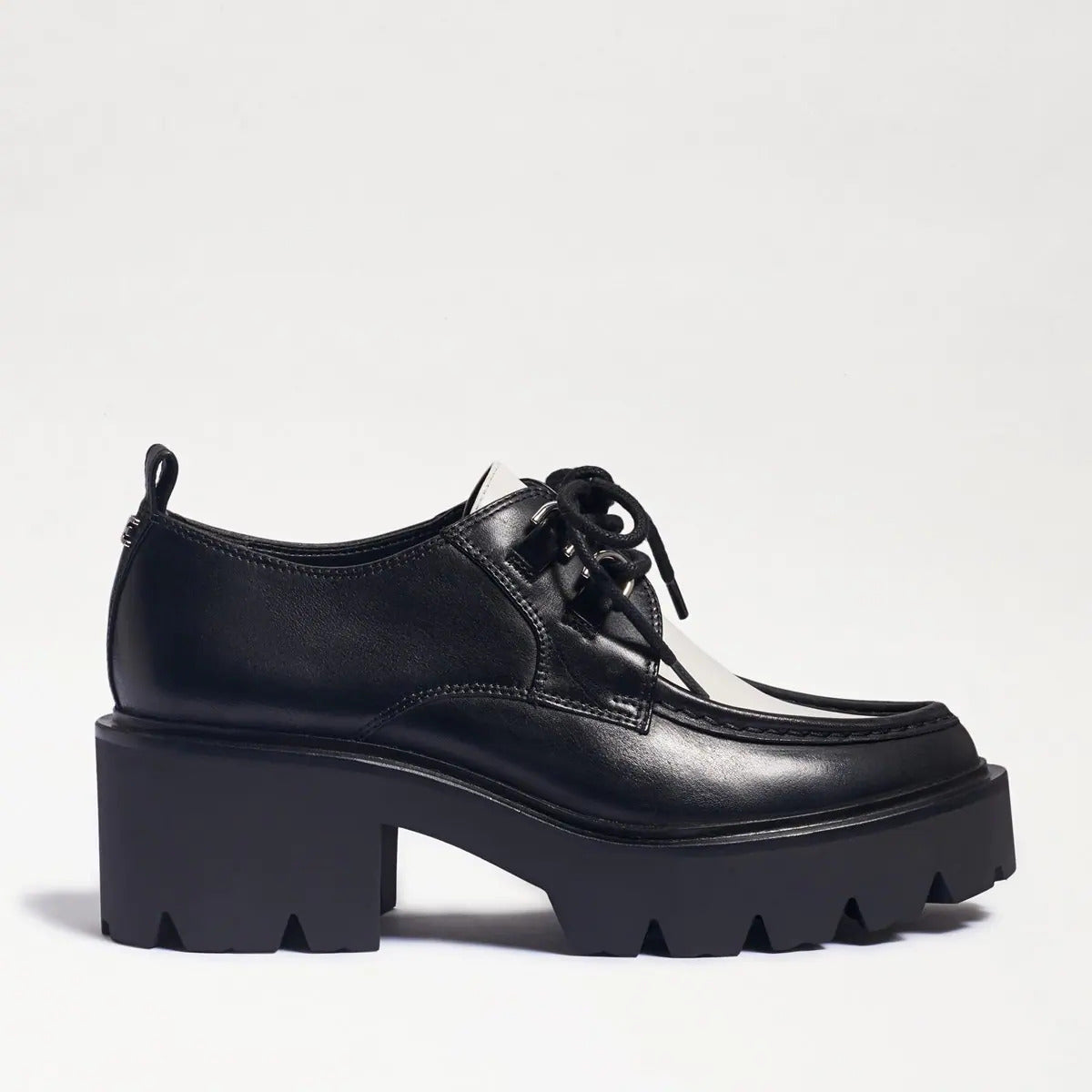 Sam Edelman Monna Black/White Leather Chunky Heel Lace Up Almond Toe Loafers