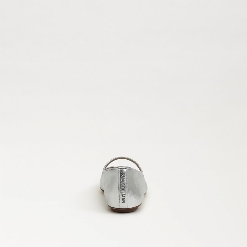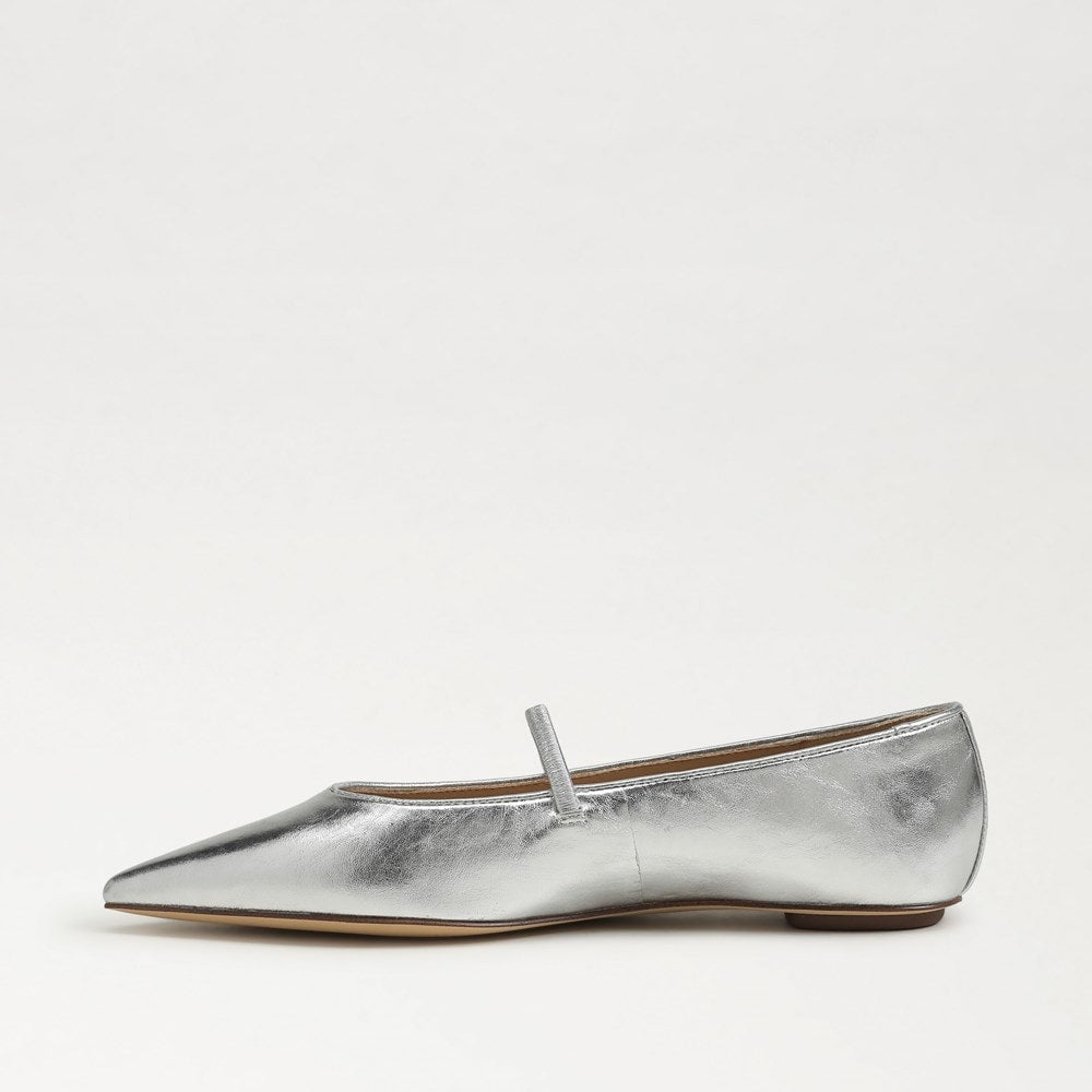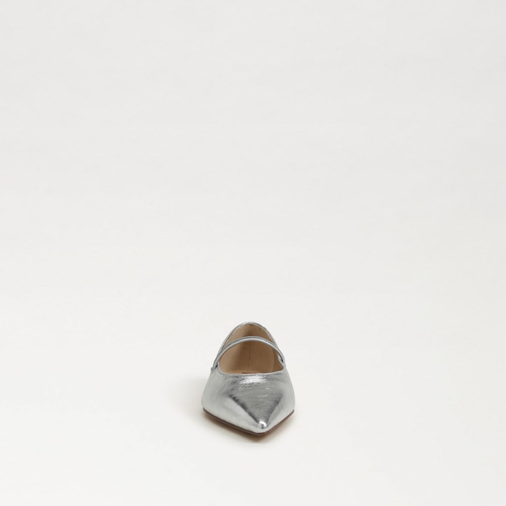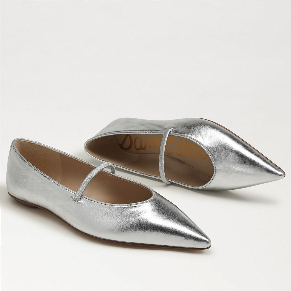 Sam Edelman Nesta Silver Leather Pointed Toe Slip On Fashion Classic Ballet Flat