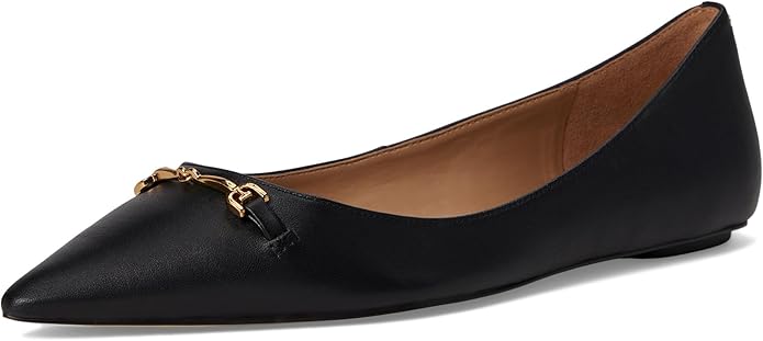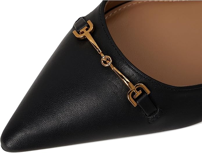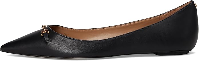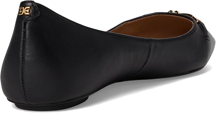 Sam Edelman Nori Black Leather Pointed Toe Chain Detailed Slip On Ballet Flats
