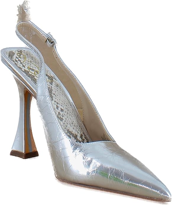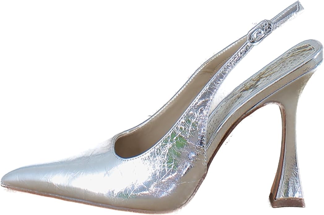 Sam Edelman Odette Soft Silver Fashion Buckle Pointed Toe Slingback Stiletto Pumps