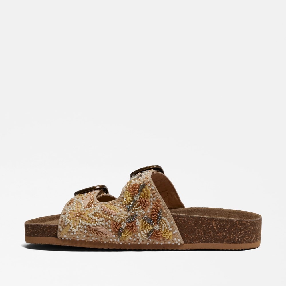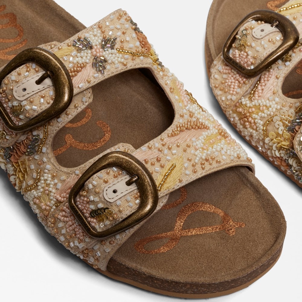 Sam Edelman Orianna Ivory Multi Sequin Beads Open Toe Double Strap Slide Sandal