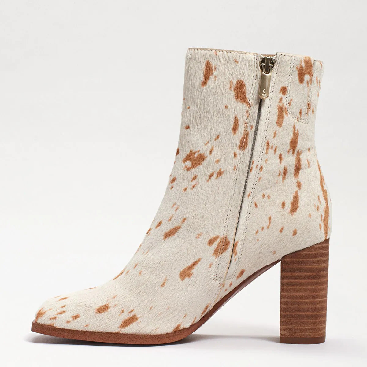 Sam Edelman Osten Ivory/Natural Stacked Heel Almond Toe Fashion Ankle Booties