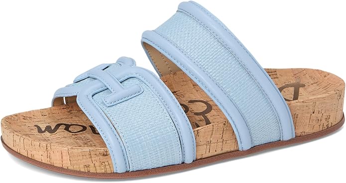 Go beyond the beach with these city savvy double-banded basketweave slides with chunky piped trim and bit detail.
