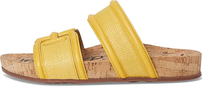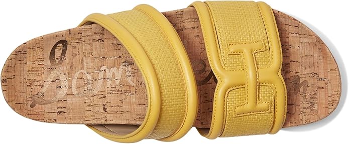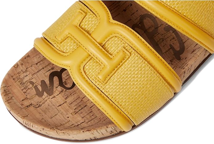 Sam Edelman Rowan Sunflower Leather Double Strap Open Toe Flat Slides Sandals
