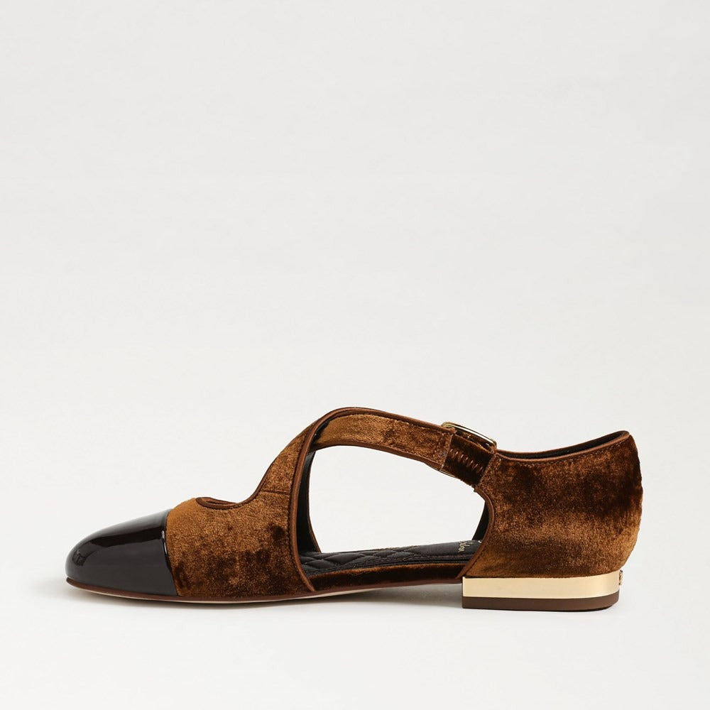 Take a moment to shine in the Roxie cutaway crisscross flat, finished with a brilliant contrast cap toe and mini block heel. The Roxie stands out when paired against masculine suiting pieces.