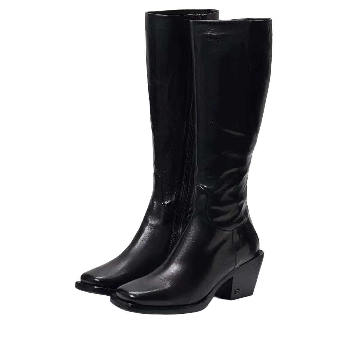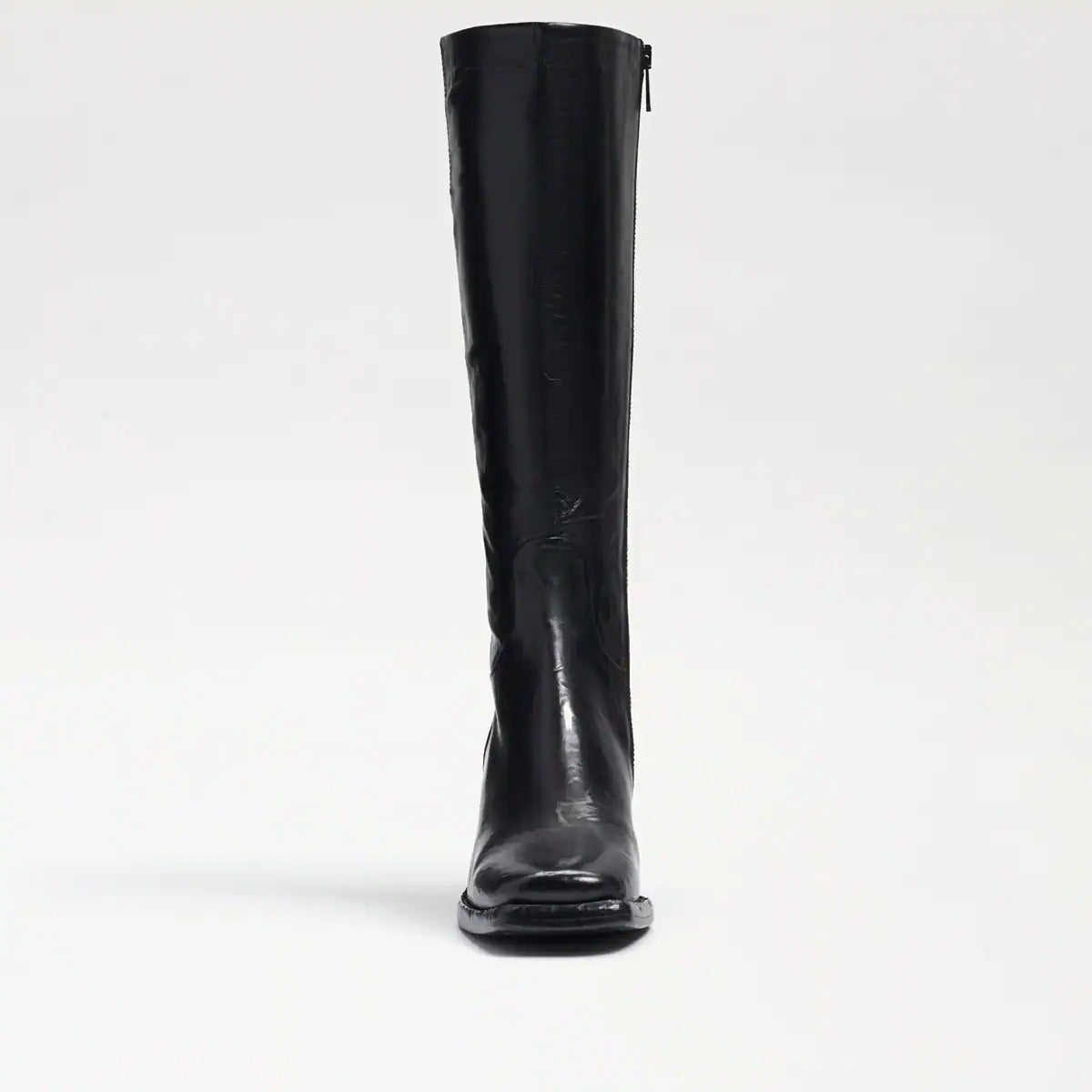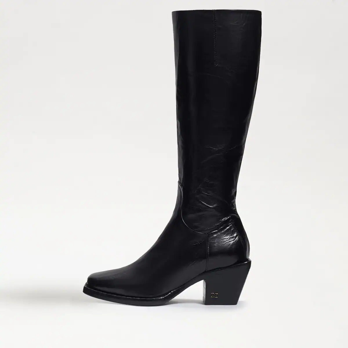 Sam Edelman Tamea Black Washed Leather Squared Toe Stacked Heel Western Boots
