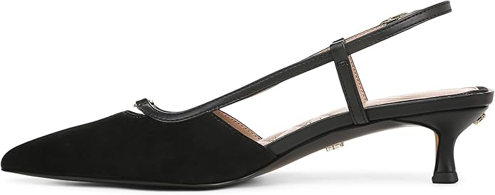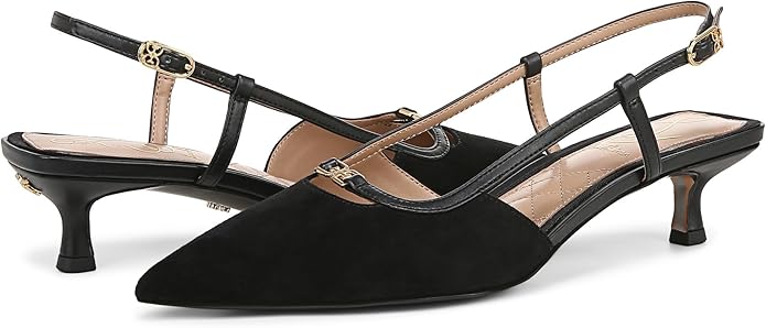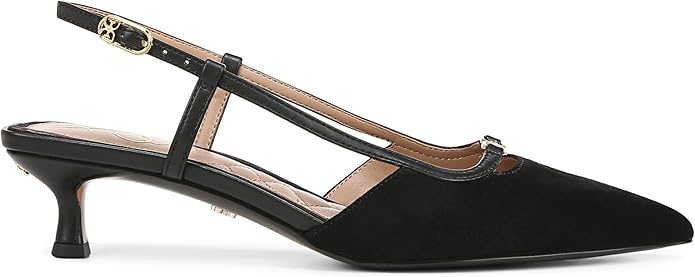 Sam Edelman Toni Black Suede Slingback Pointed Toe Kitten Heeled Fashion Pumps