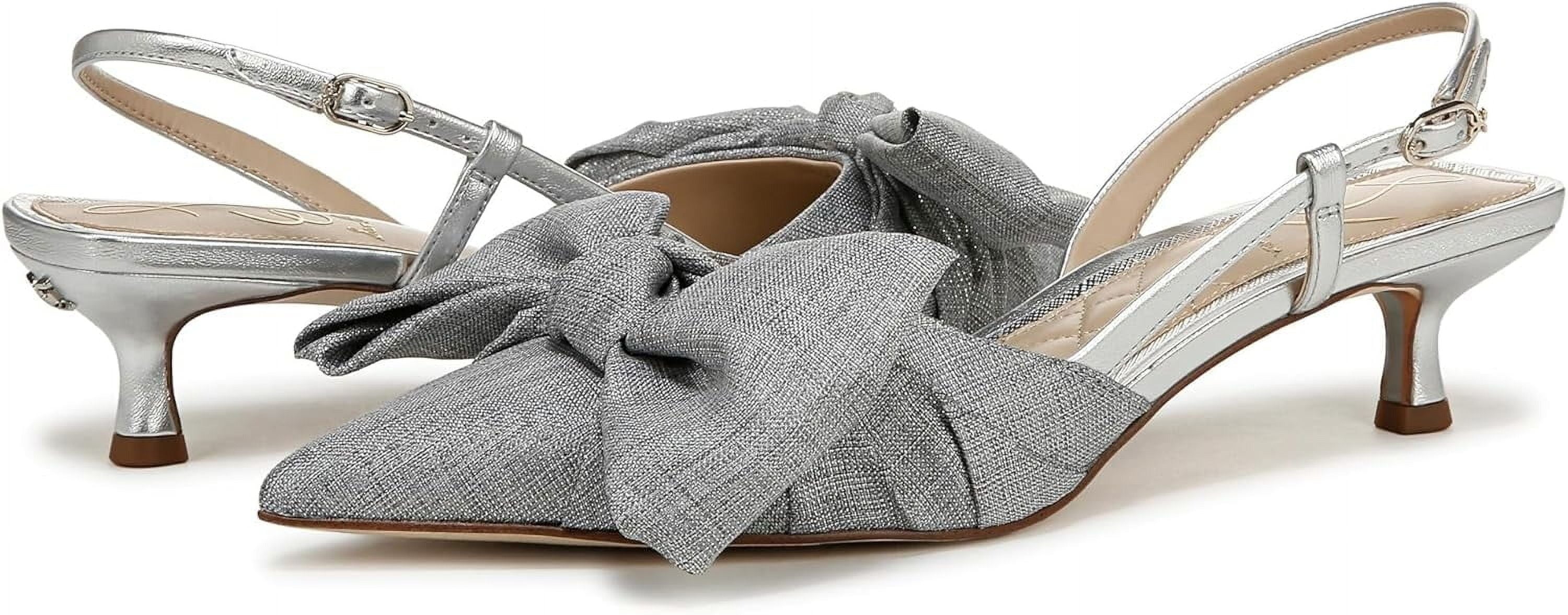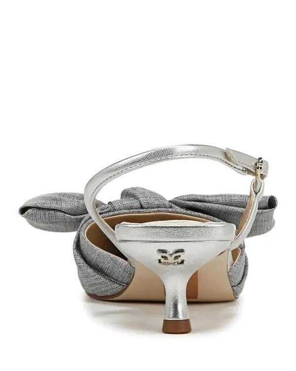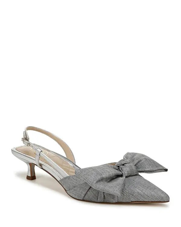 Sam Edelman Treena Soft Silver Pointed Toe Slingback Kitten Heeled Bow Pumps