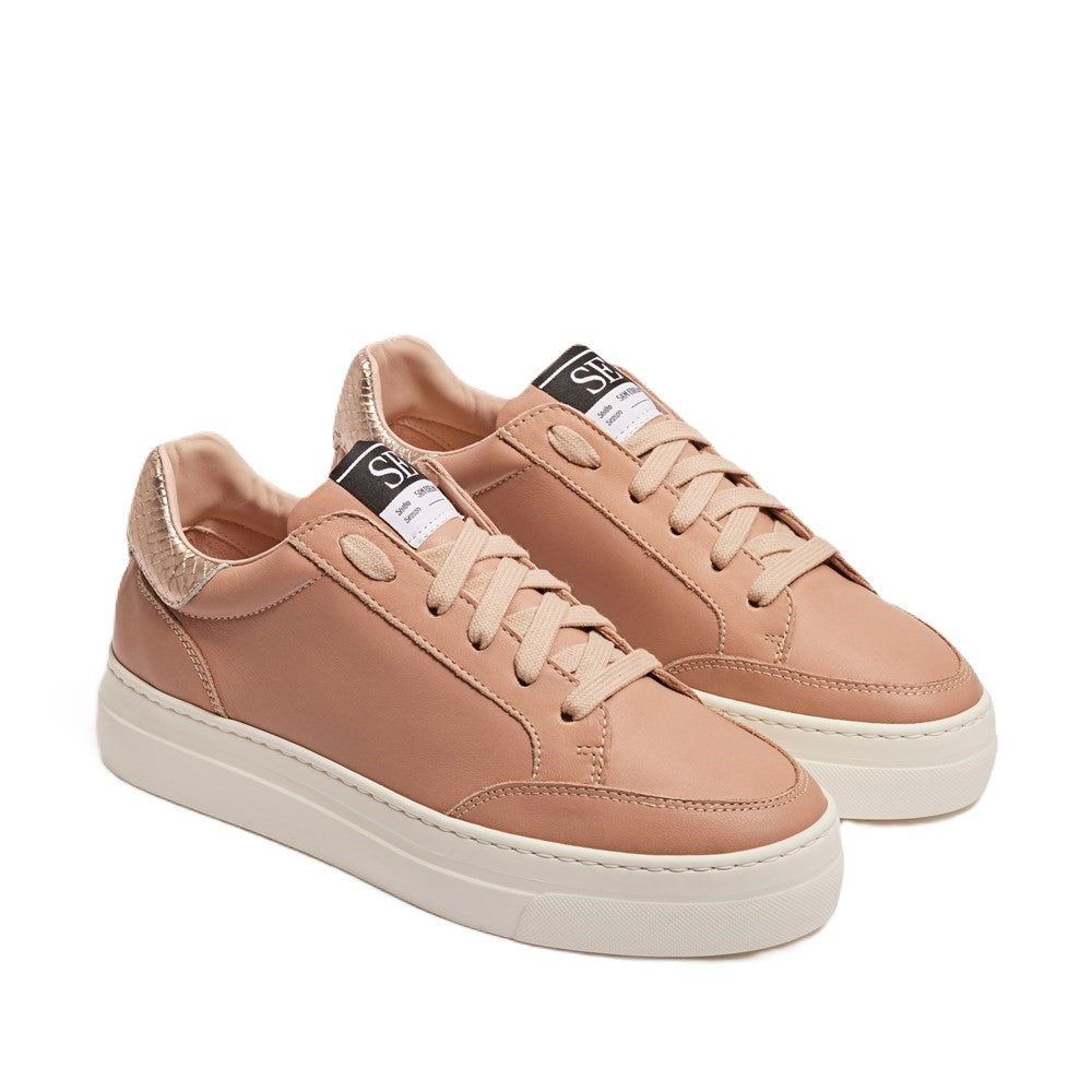 Sam Edelman Wess Beige Leather Lace Up Rounded Toe Fur Detailed Low Top Sneakers