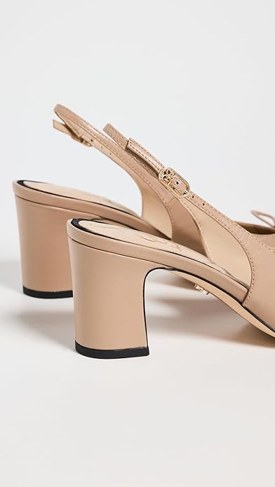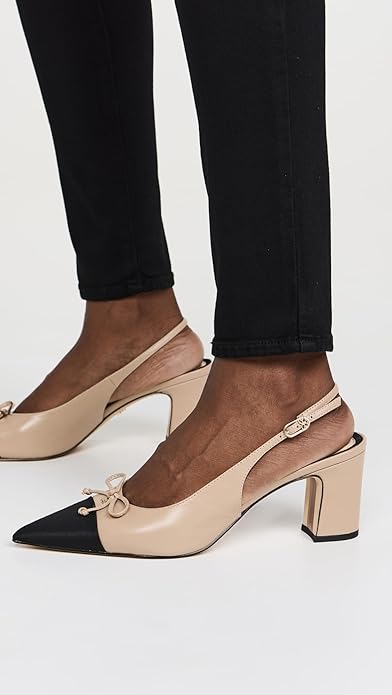Sam Edelman Willette Soft Beige/Black Pointed Toe Slingback Block Heeled Pumps