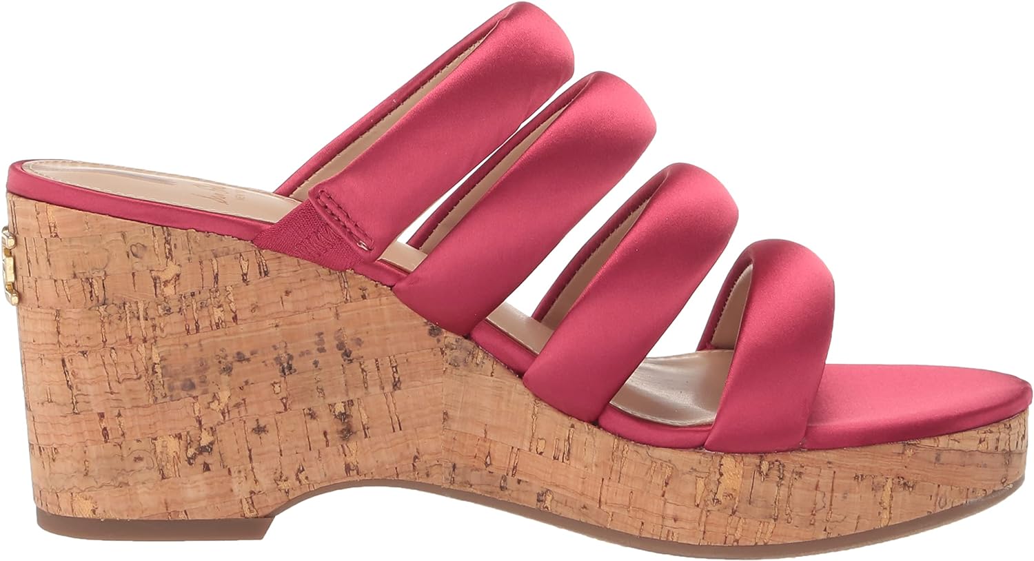 Sam Edelman Yuki Ultra Fuchsia Open Toe Slip On Strappy Wedge Heeled Sandals
