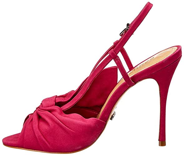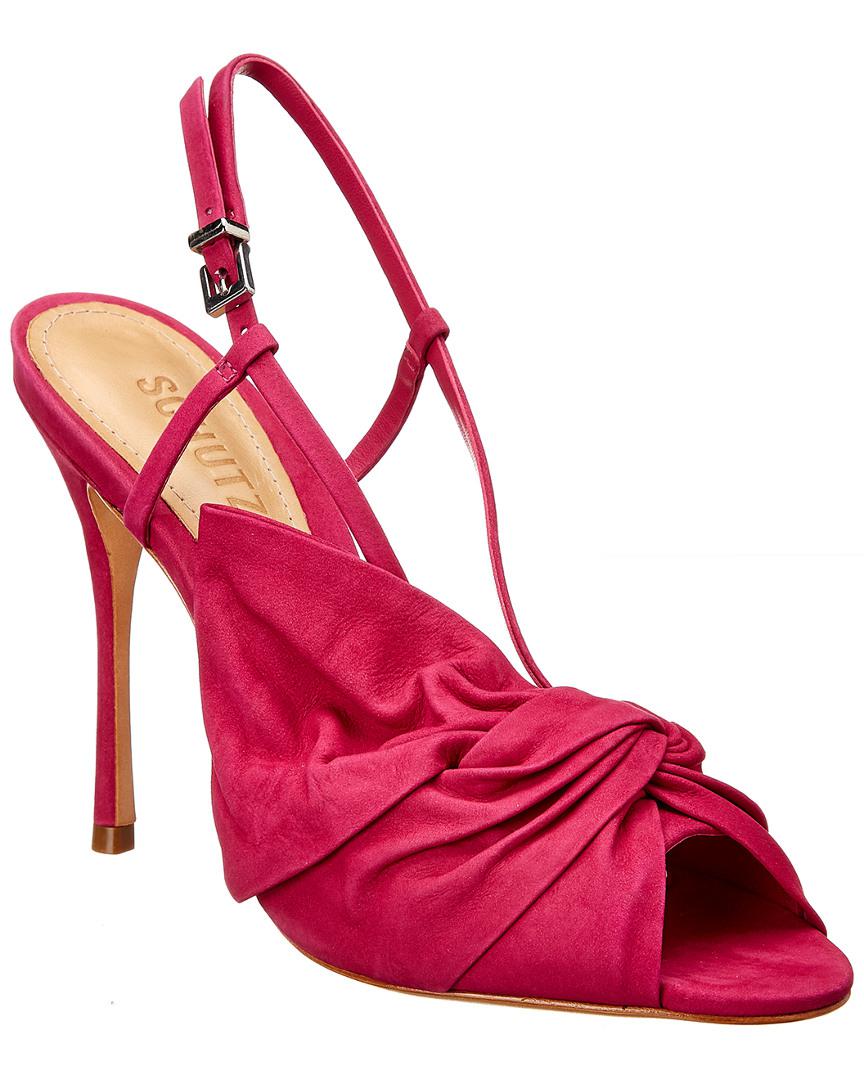 Schutz Allina Bright Rose Gathered Bow Peep Toe Ankle Stiletto Heel Sandals
