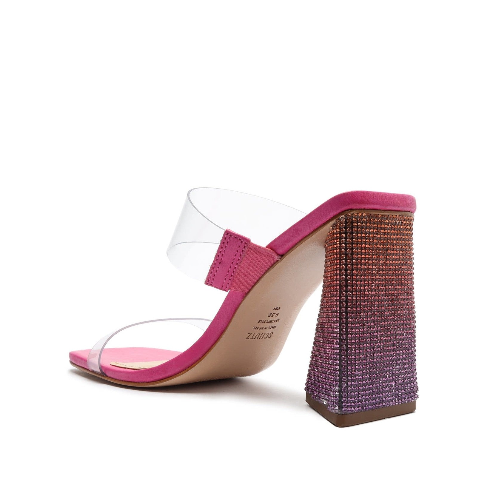 - The heel is a crystal-encrusted block heel, adding a glamorous touch.