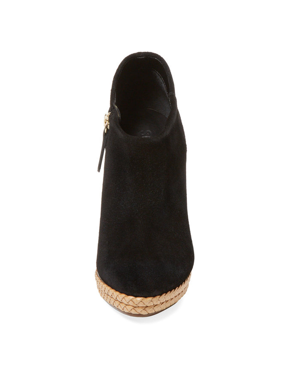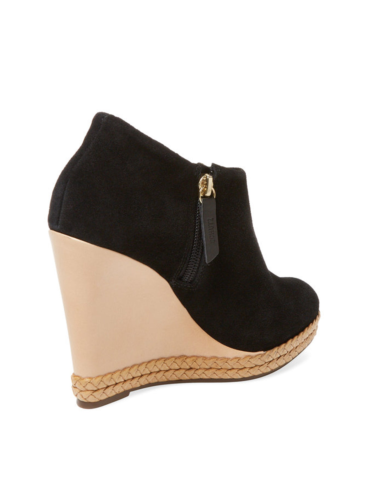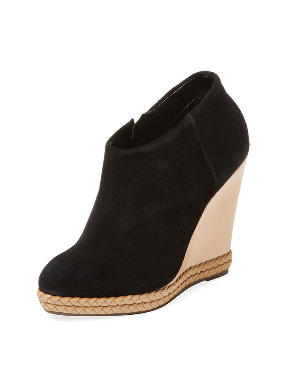 Schutz Belua Black Suede Wood Wedge Espadrille Platform Low Cut Ankle Booties