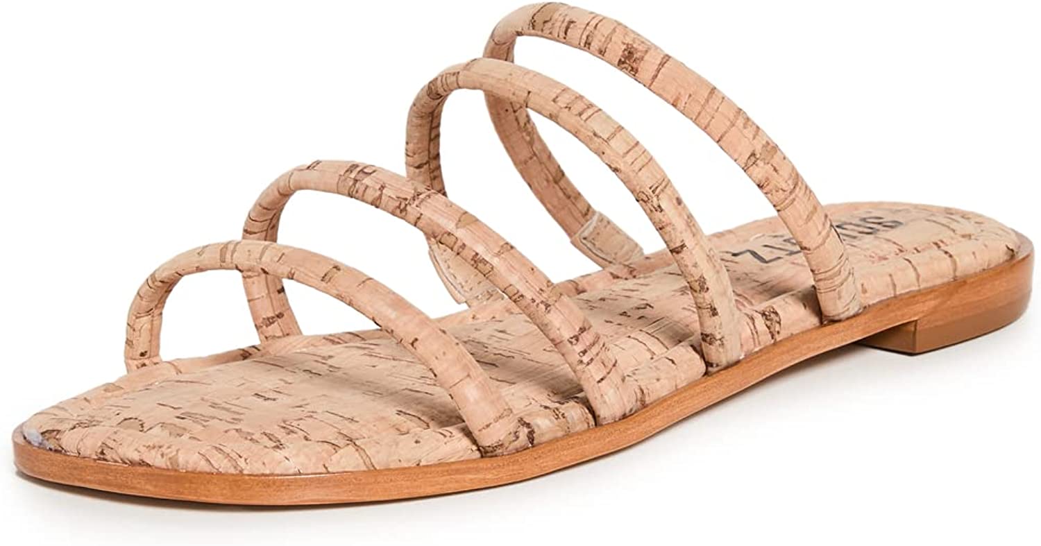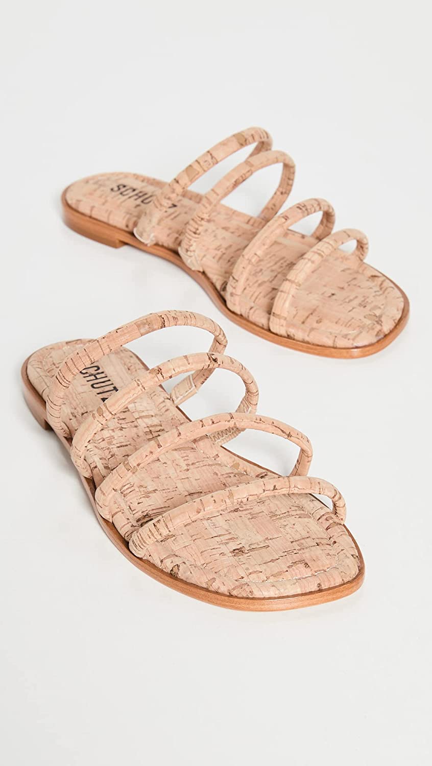 Schutz Cari Natural Slip On Open Toe Strappy Square-Toe Silhouette Flat Sandals