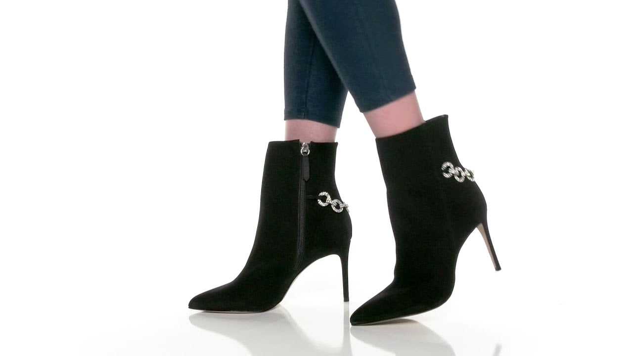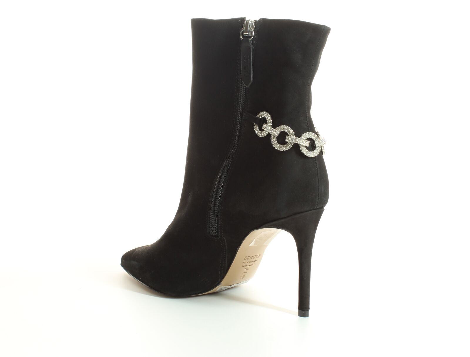 Schutz Elisah Black Pull On Pointed Toe Embellished Upper Stiletto Fashion Boots