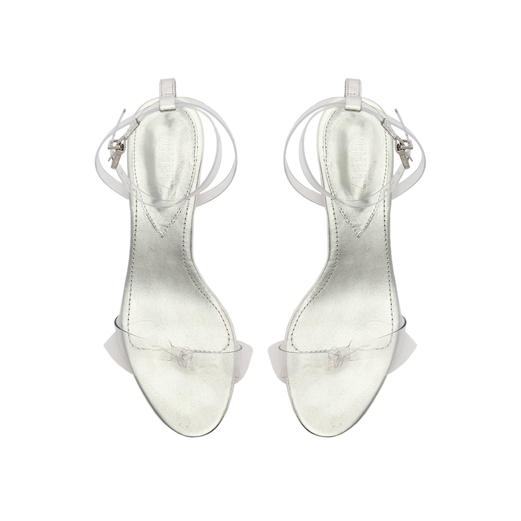 Schutz Elyda Mid Silver Bow Tie Vamp Ankle Strap Open Toe Block Heel Sandals