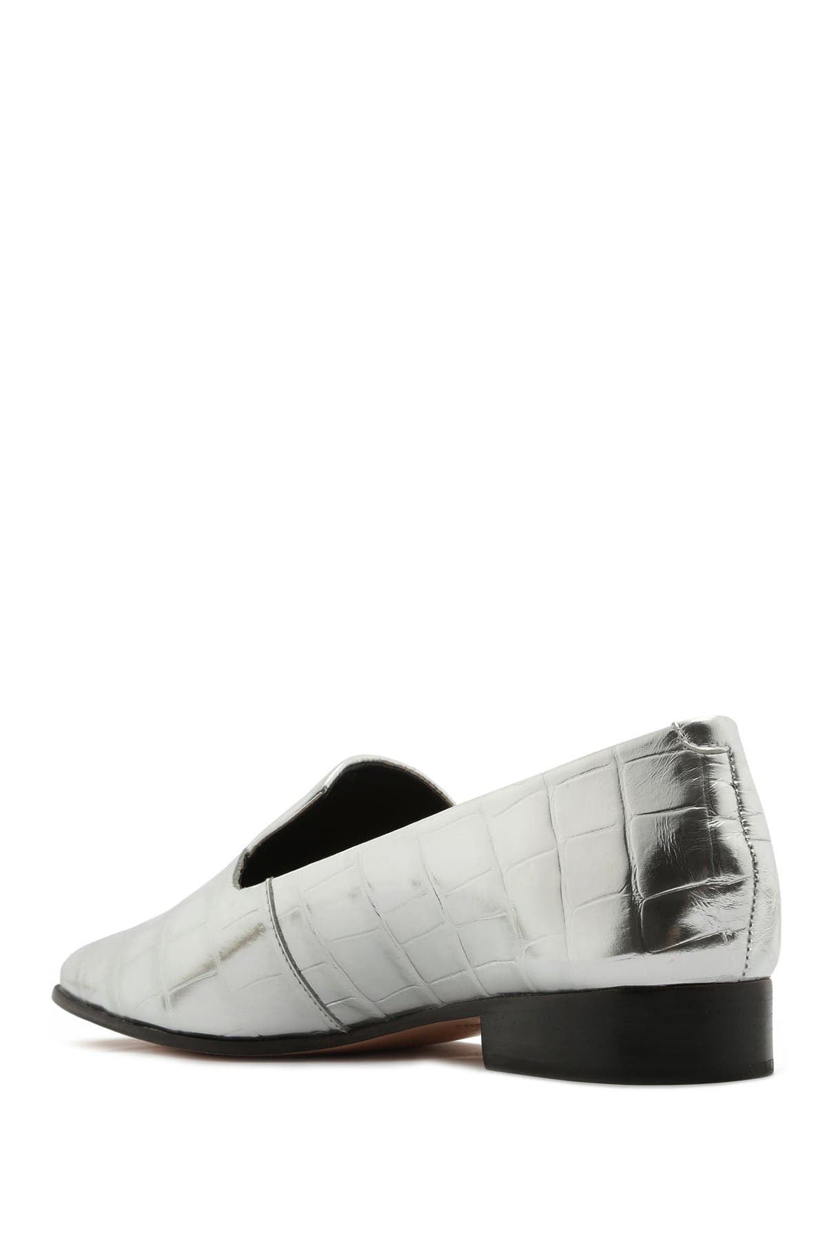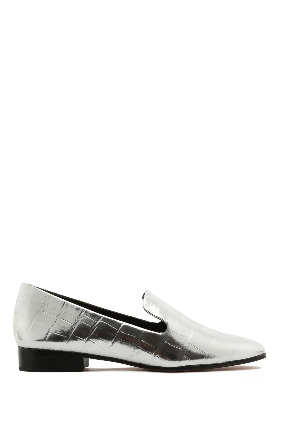 Schutz Flor Silver Pointed Toe Flats Crocodile Embossed Metallic Slip On Loafers