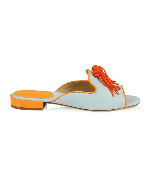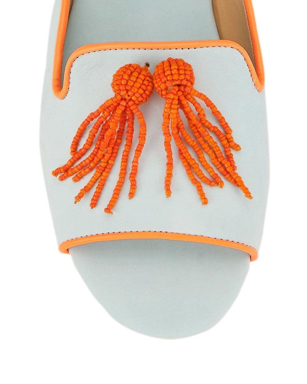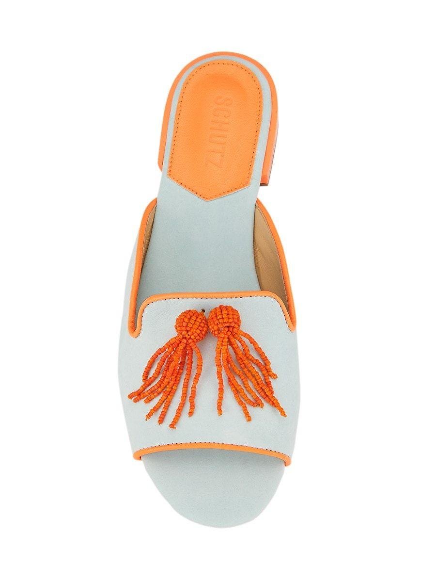 Schutz Jannis Flat Blue Open Toe Slip On Embellished Tassel Upper Flat Sandals