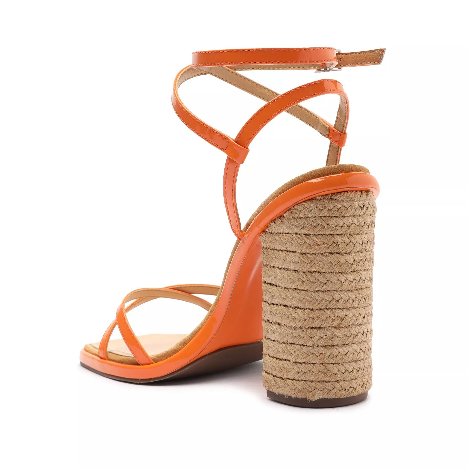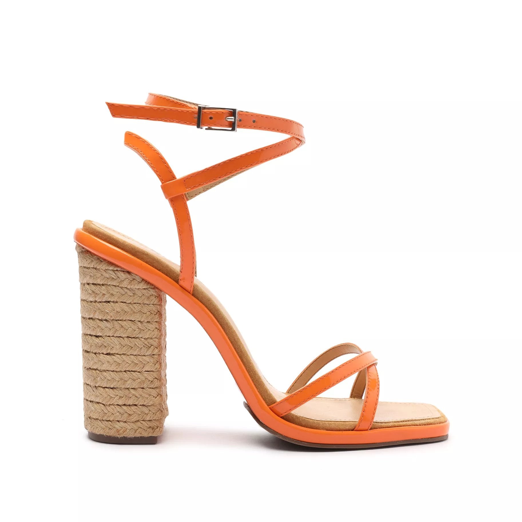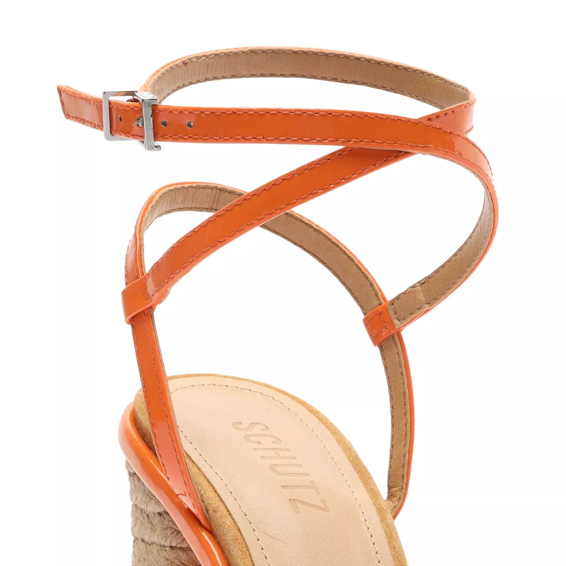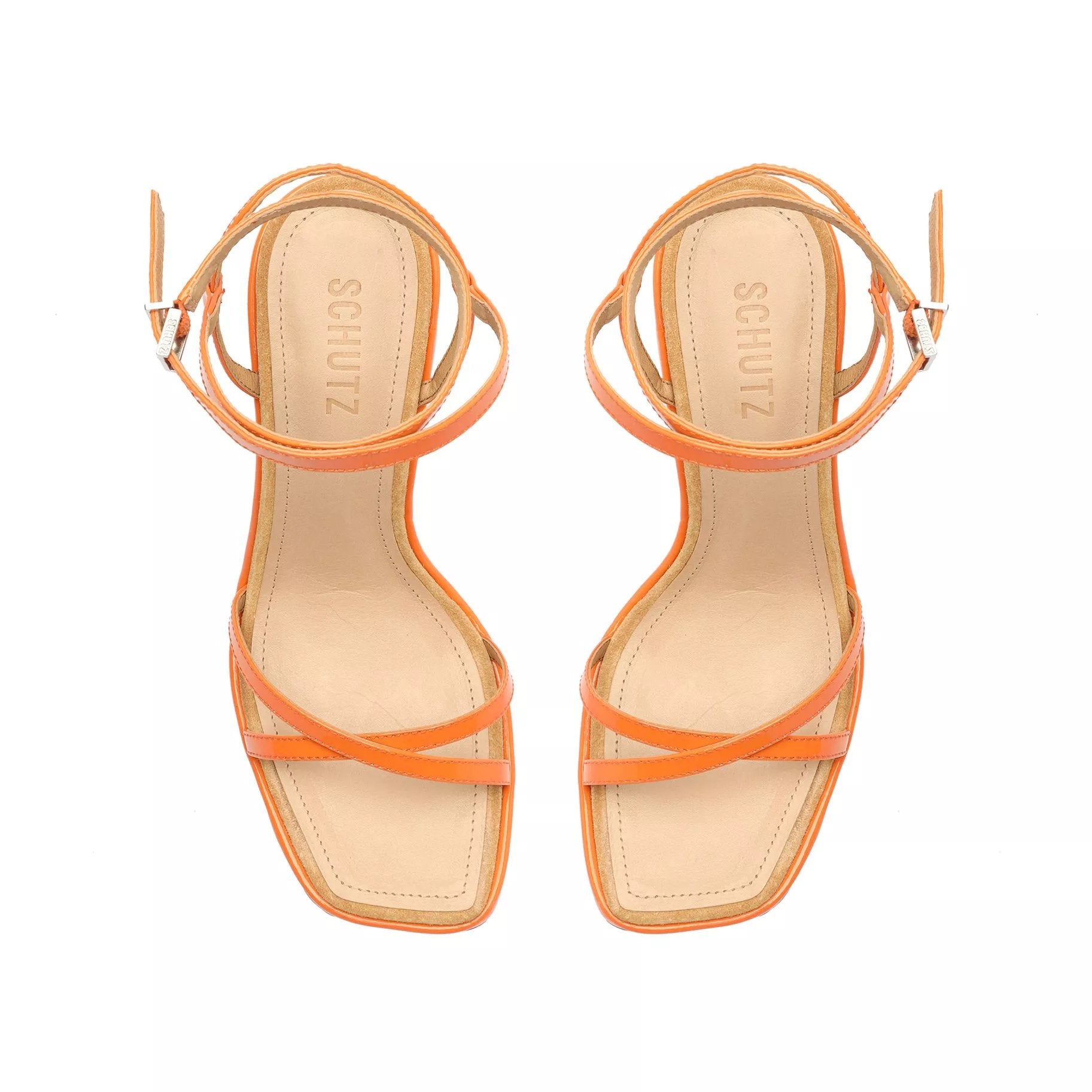 Schutz Narah Orange Open Toe Cross Buckle Ankle Strap Block High Heeled Sandals