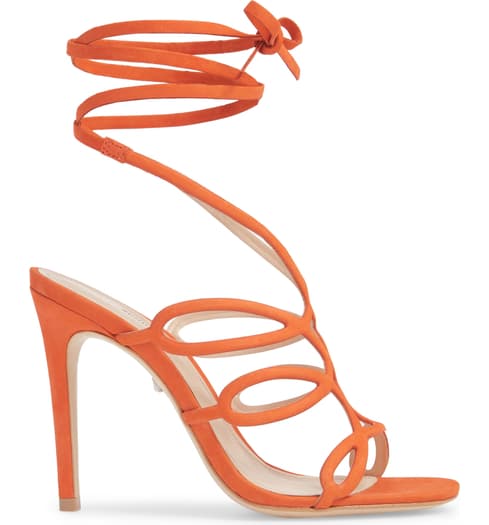 Schutz Nivia Bright Orange HI Stiltto Heel Single Sole Tie up Wrap Pump Sandals