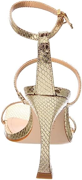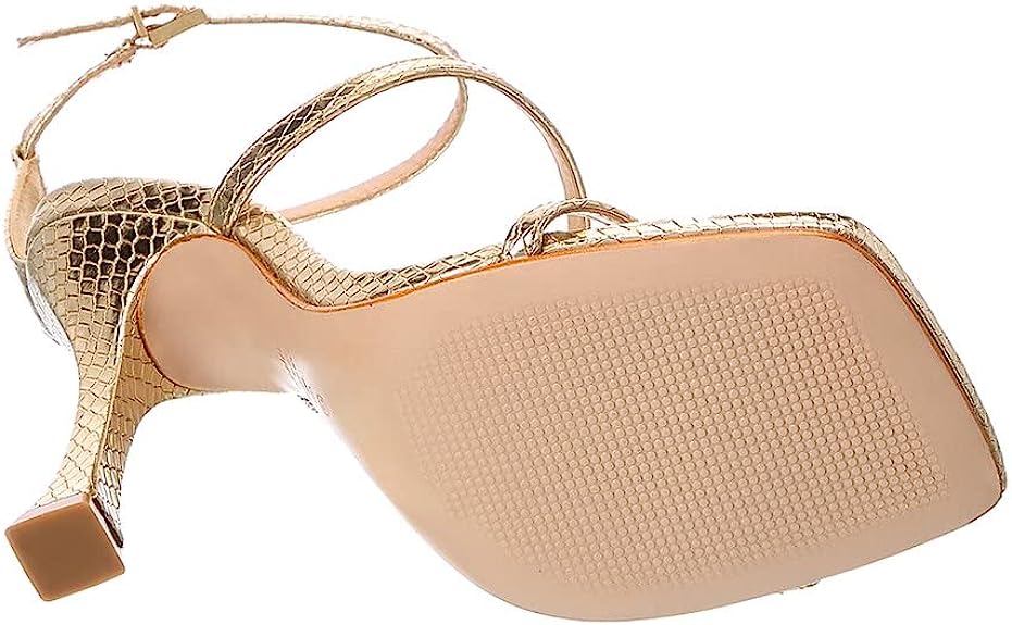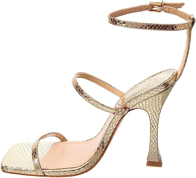 Schutz Nylla Gold Metallic Snake-Embossed Ankle Strap Open Toe High Heel Sandals