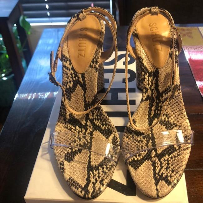 Schutz Quelen Fabric Sandals Multi Yellow Transparent Block Heeled Open Toe