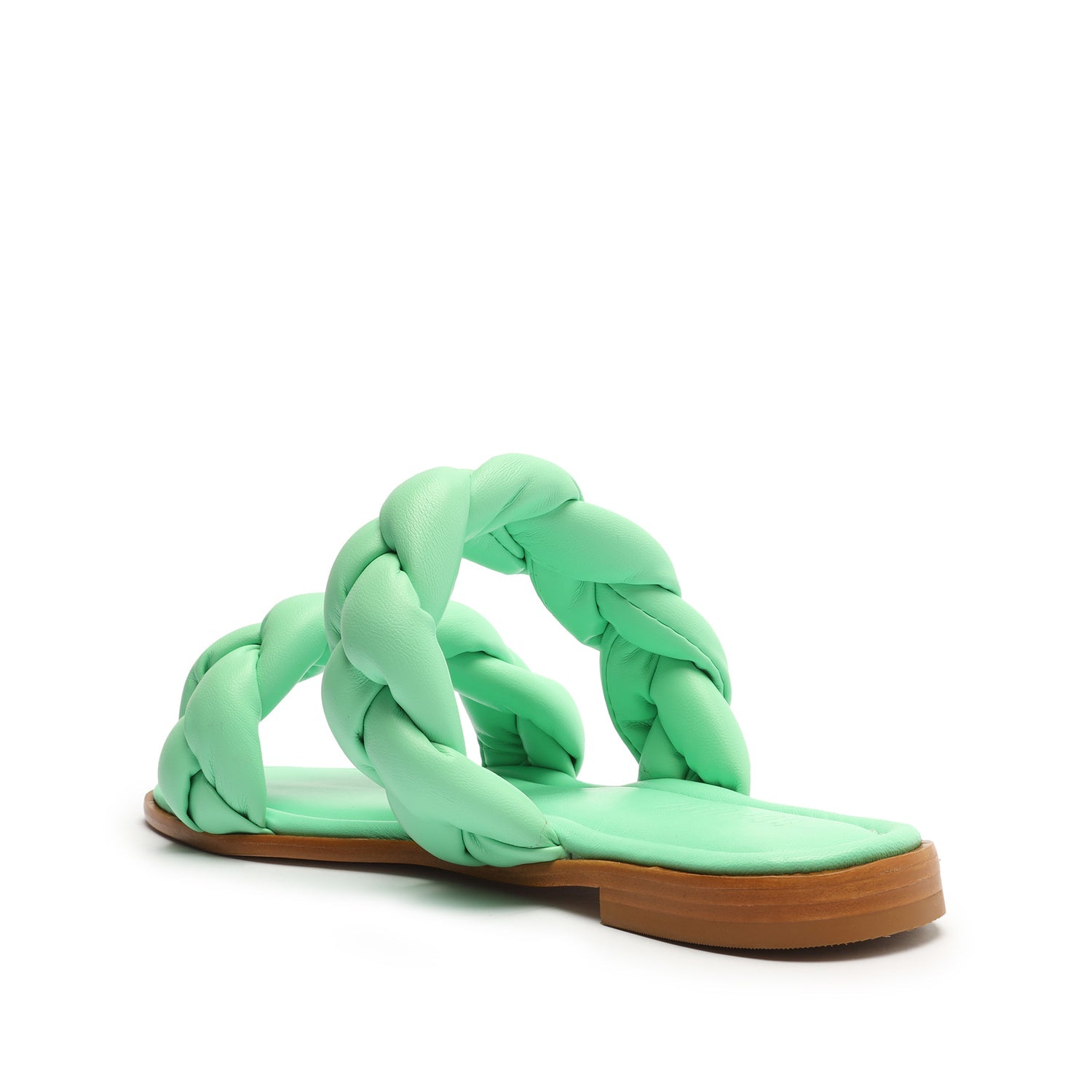 Schutz Soo Flat Green Leather Braided Straps Slip On Open Toe Flat Heel Sandals