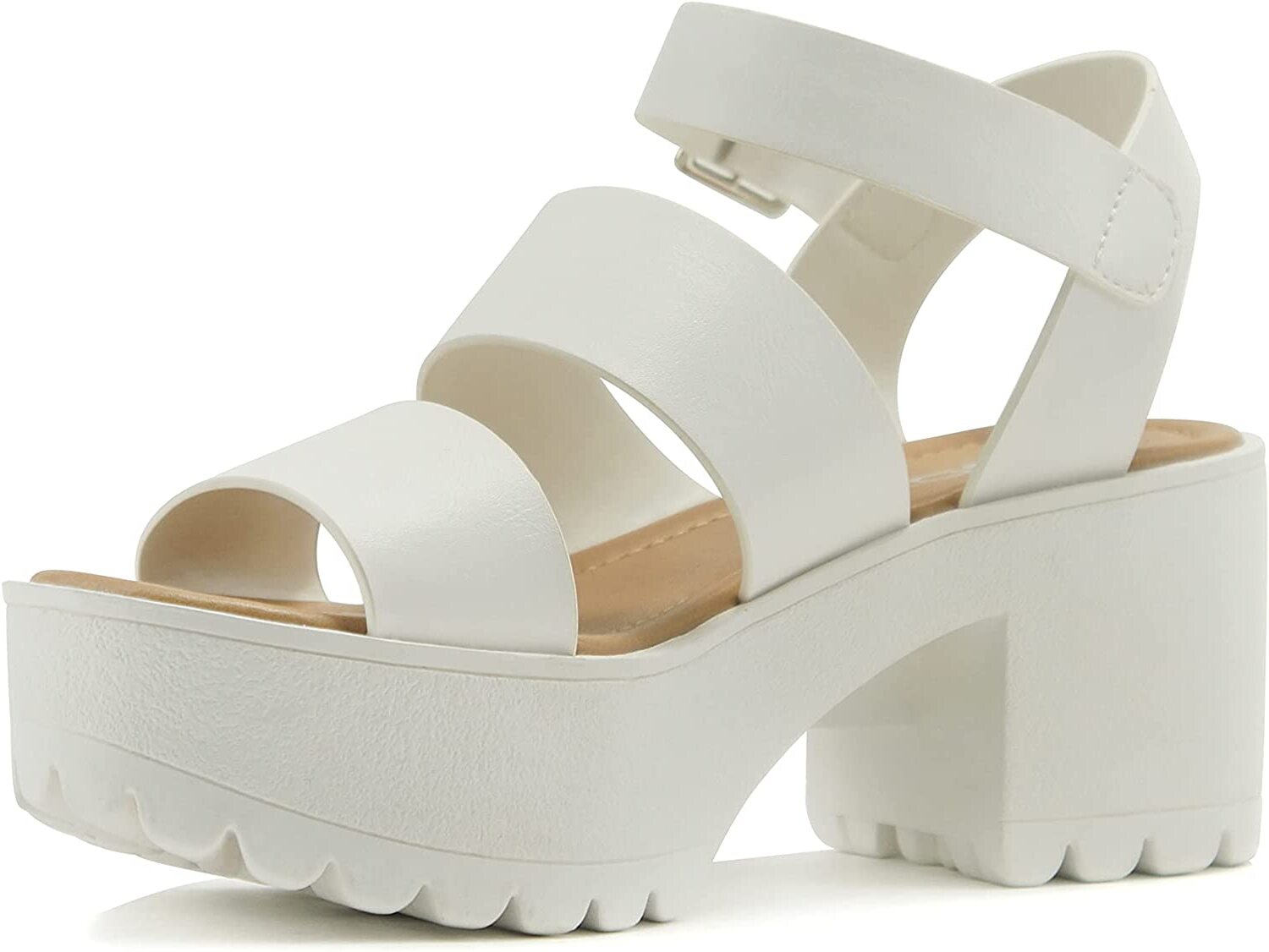 Soda Account White Ankle Strap Rounded Open Toe Strappy Block Heeled Sandals