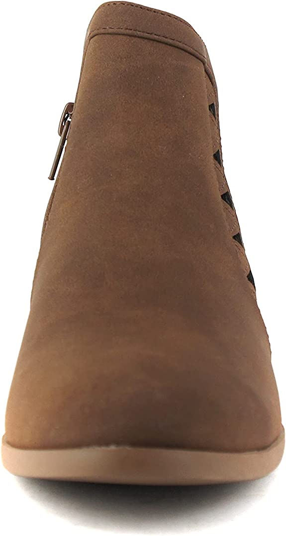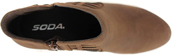 Soda Chance Light Brown Block Heel Side Zipper Closed Toe Breathable Booties
