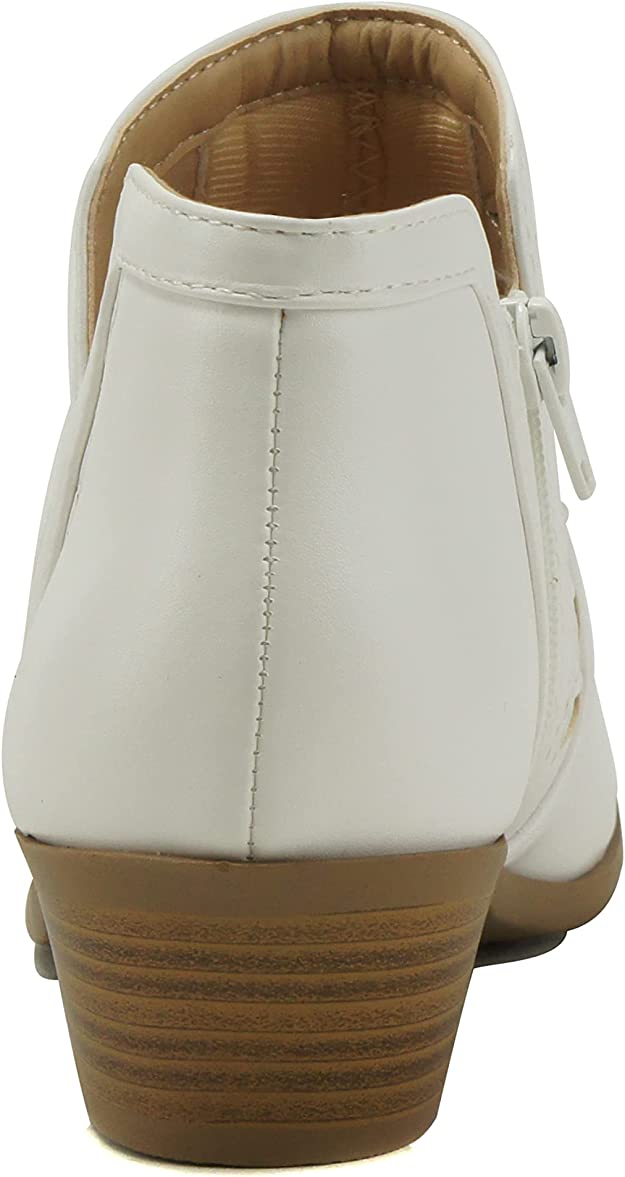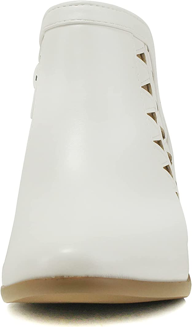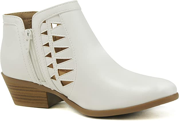 Soda Chance Off White Perforated Cut Out Stacked Block Heel Ankle Booties