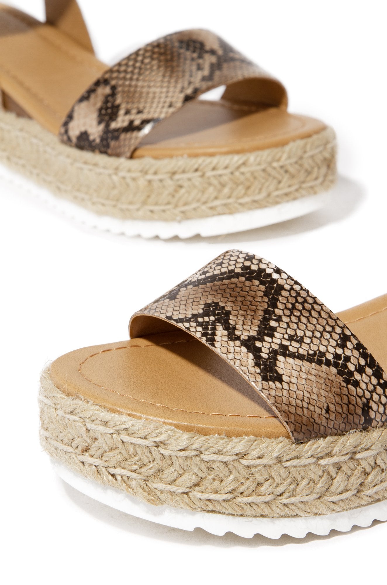 Soda Clip Natural Python Open Toe Casual Espadrilles Trim Heeled Sandals