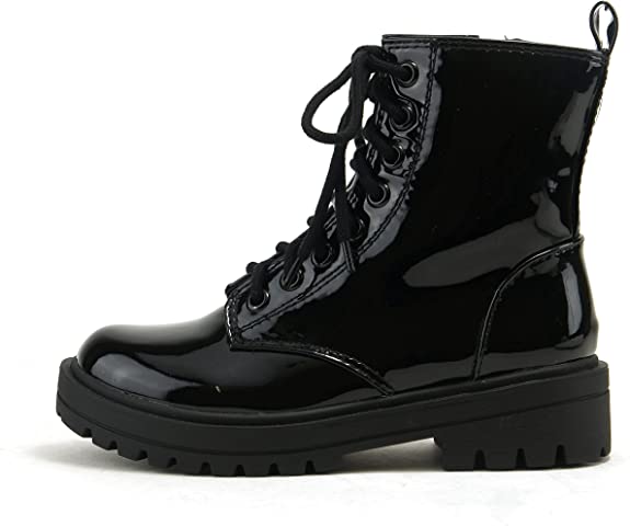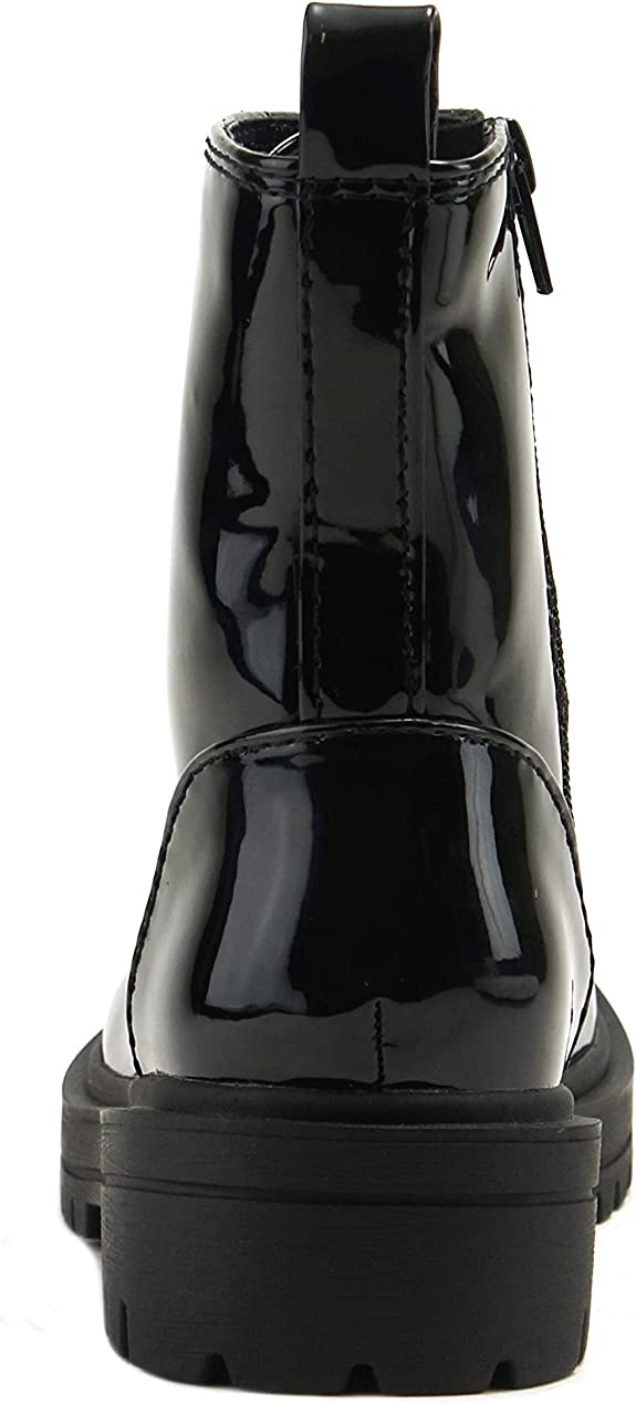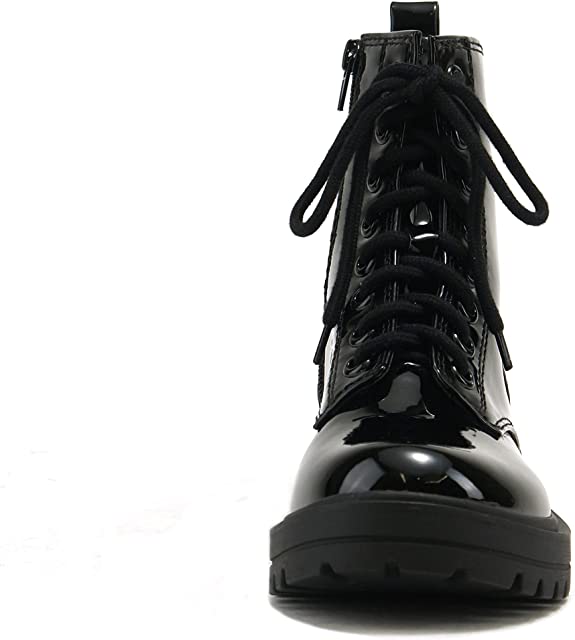Soda Firm Black Patent Lace Up Rounded Toe Chunky Platform Combat Ankle Boots