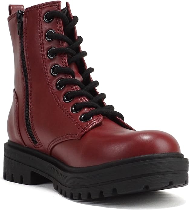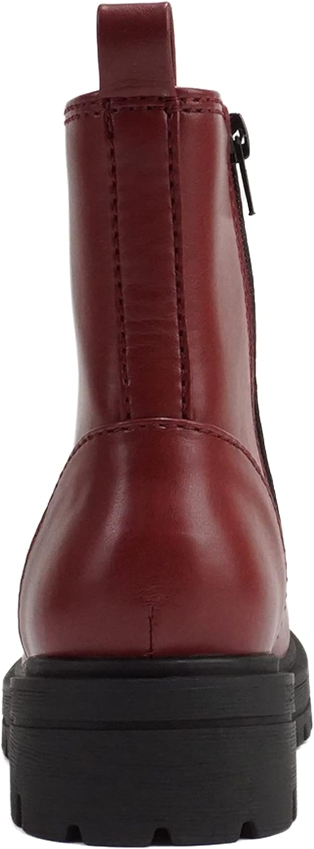 Soda Firm Burgundy Pu Lace Up Rounded Toe Chunky Platform Combat Ankle Boots