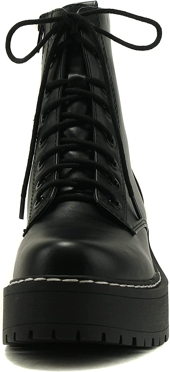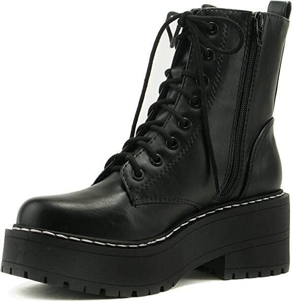 - Platform Combat Boot with Chunky Lug Sole Platform and Chunky Heel with Welt Stitching