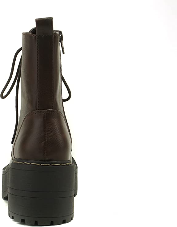 - Platform Combat Boot with Chunky Lug Sole Platform and Chunky Heel with Welt Stitching