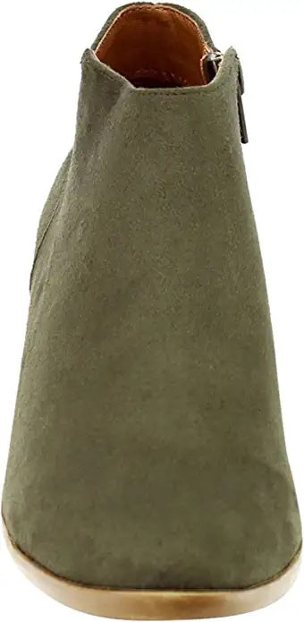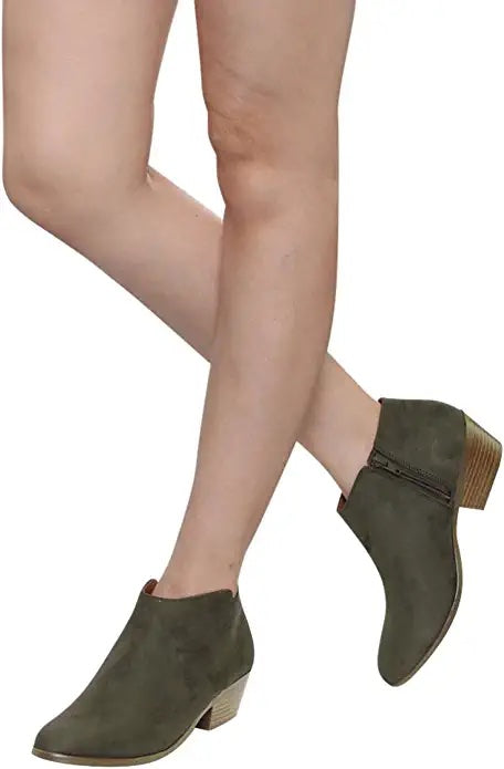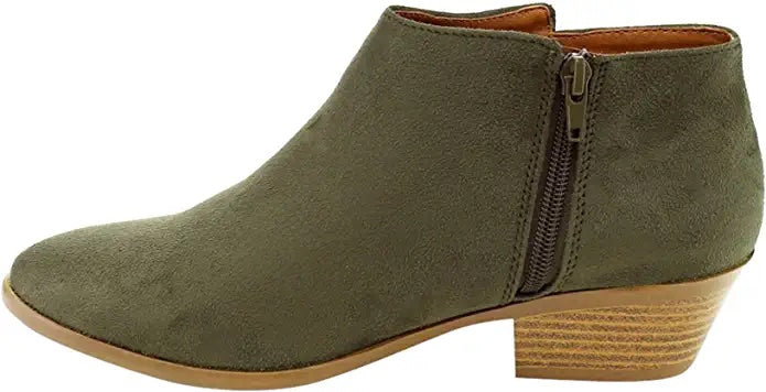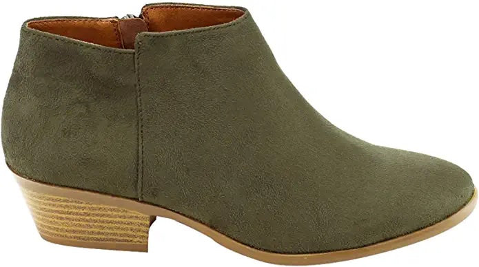Soda Mug Natural Suede Western Faux Suede Low Chunky Block Heel Ankle Booties