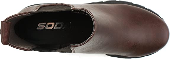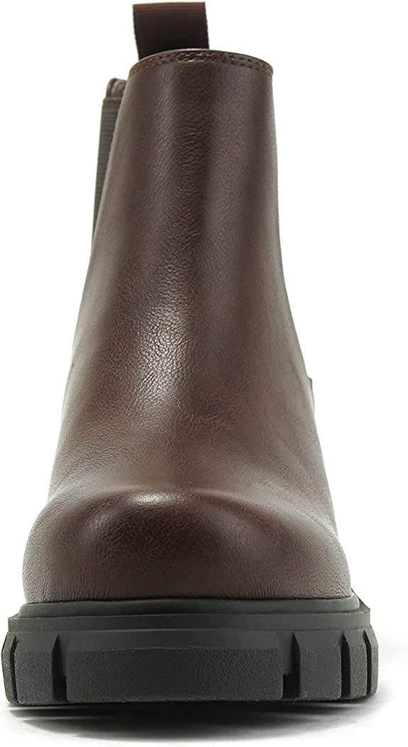 Soda Pioneer Lug Sole Mid Heel Gore Chelsea Fashion Ankle Elastic Booties Brown