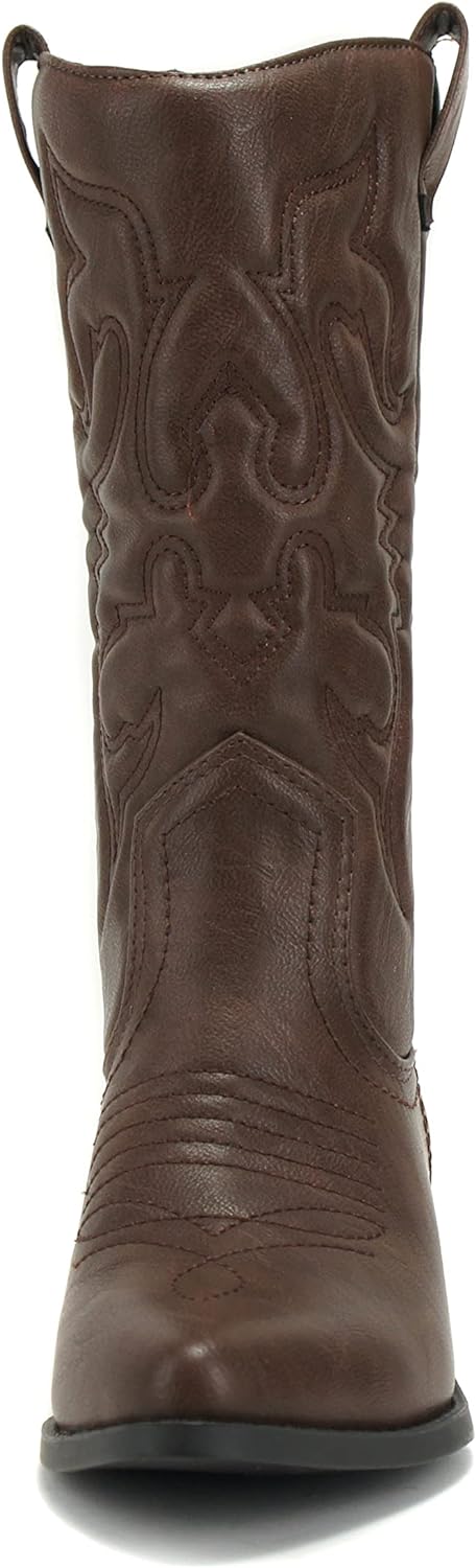 Soda Reno Dark Tan Pu Western Cowboy Pointed Toe Knee High Pull On Tabs Boots