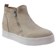 Soda Taylor Hidden Fahsion Wedge Sneaker Shoes Side Zipper Oat Nude Suede