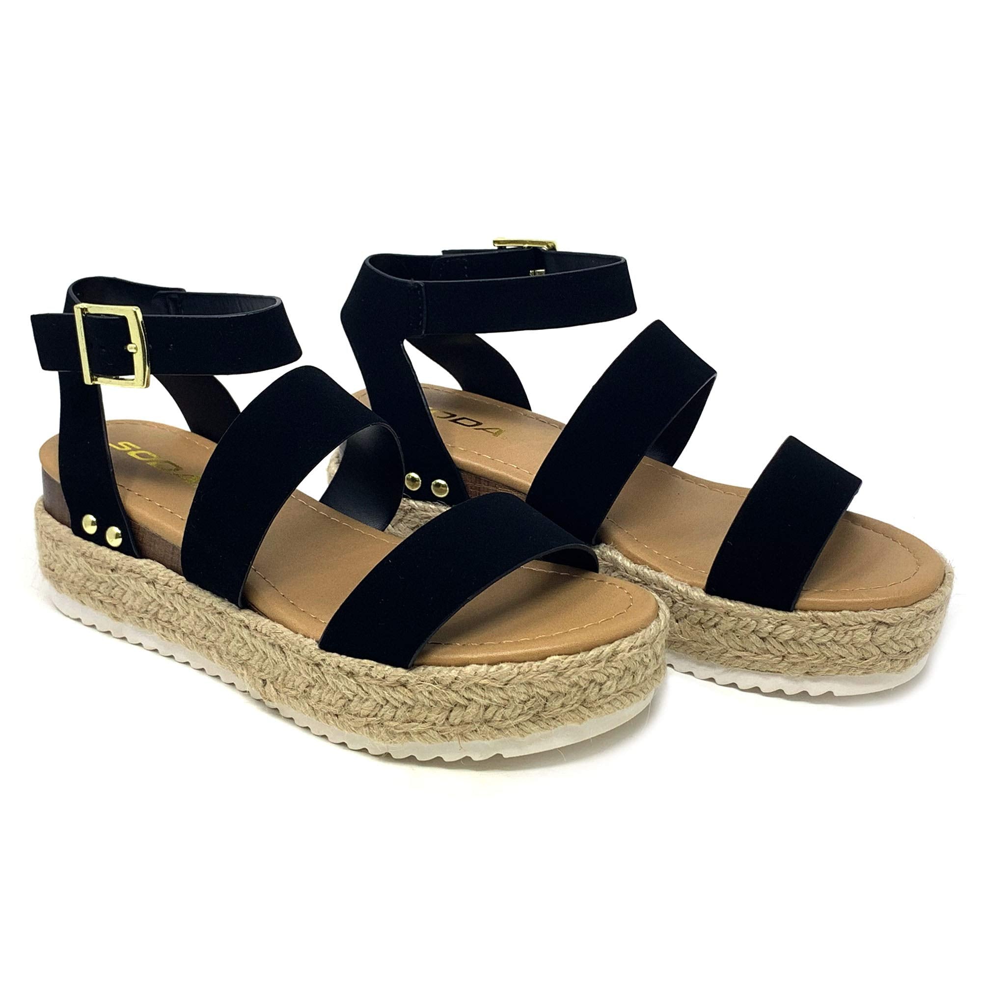 Soda Top Shoe Bryce Black Open Toe Strap Espadrilles Flatform Wedge Sandals (9)