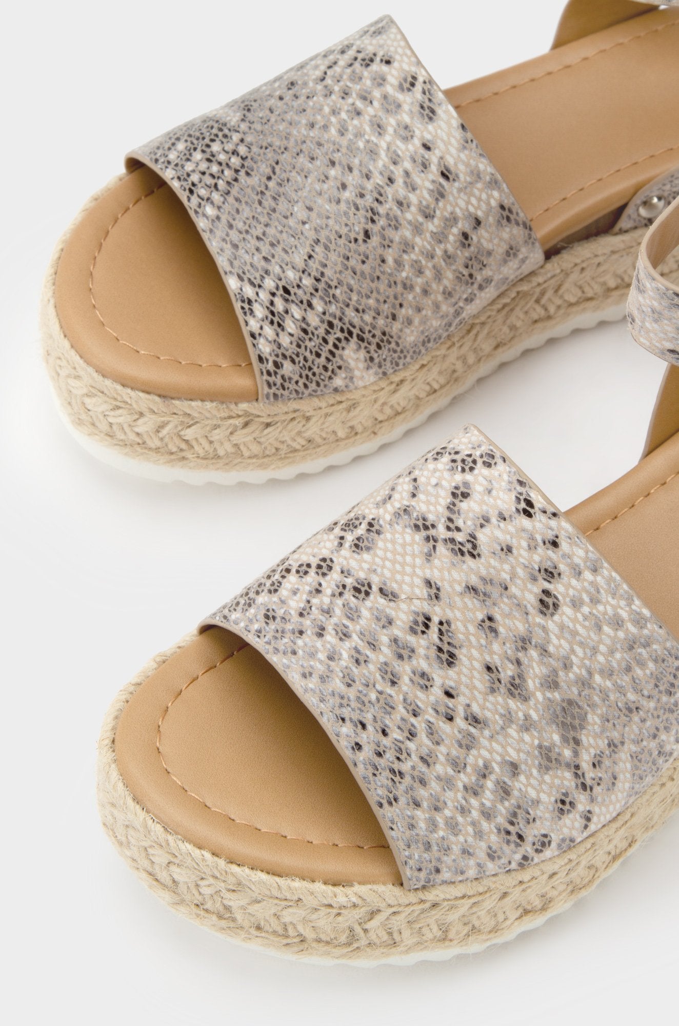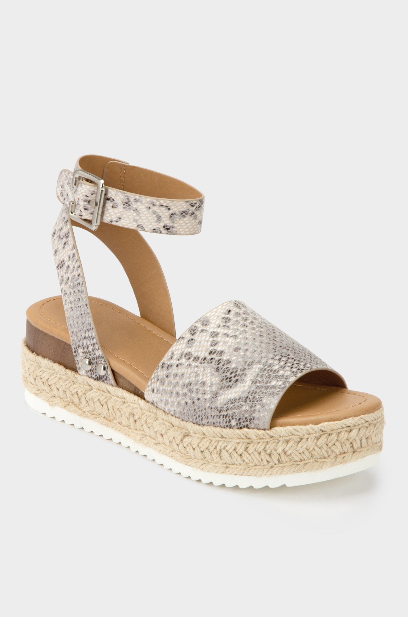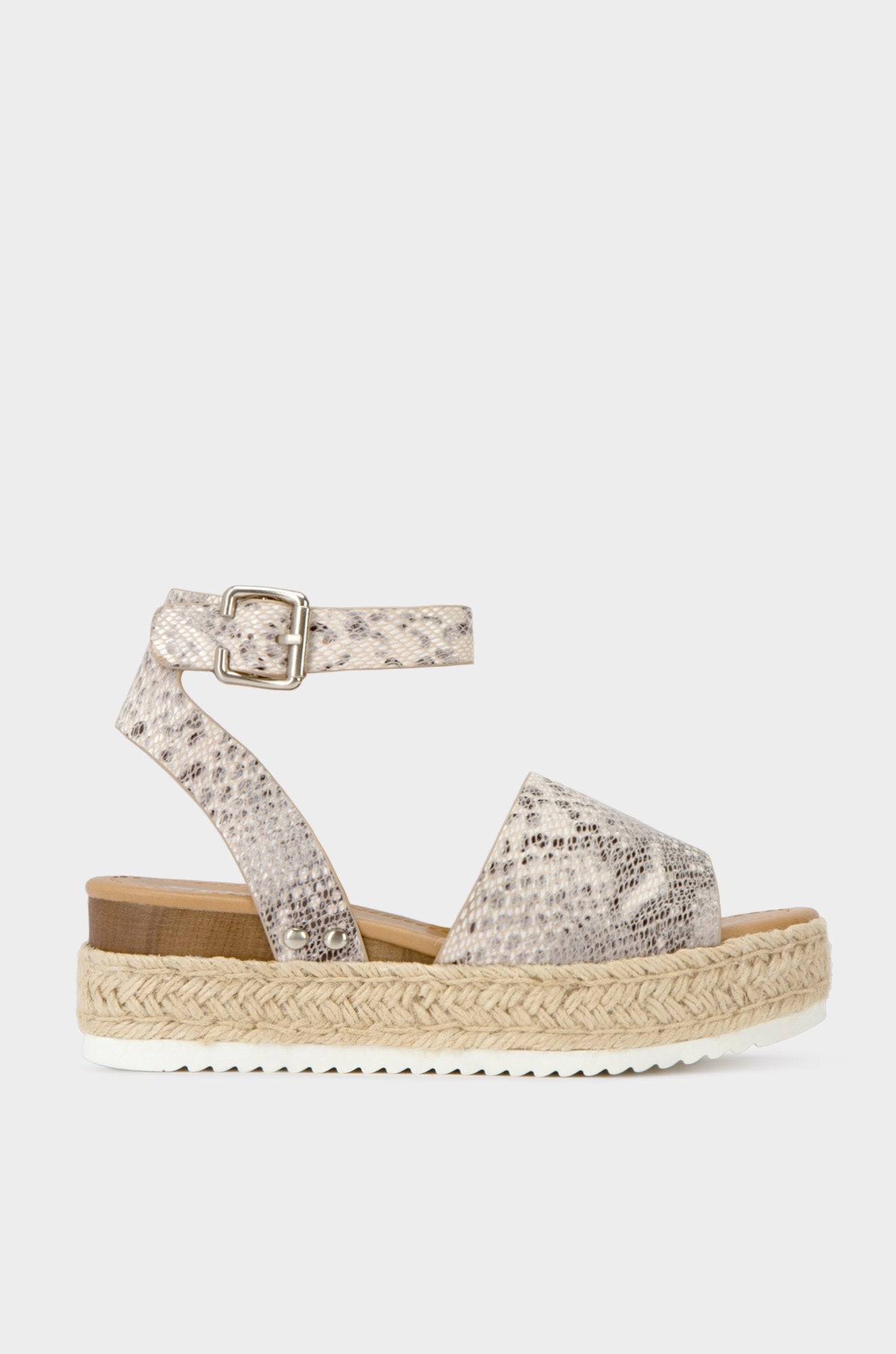 Soda Topic Beige Python Espadrilles Trim Flatform Studded Wedge Open Toe Sandals