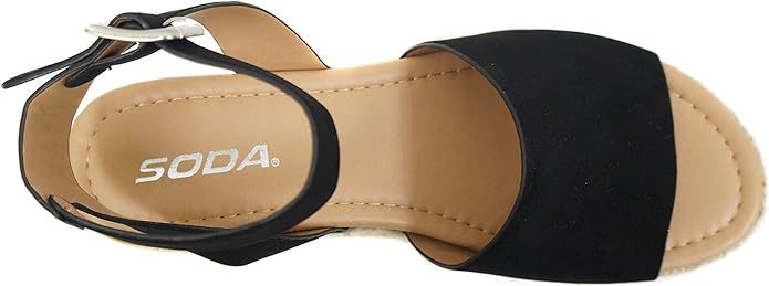 Soda Topic Black Nubuck Espadrilles Ankle Strap Studded Open Toe Wedge Sandals