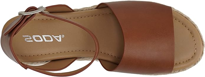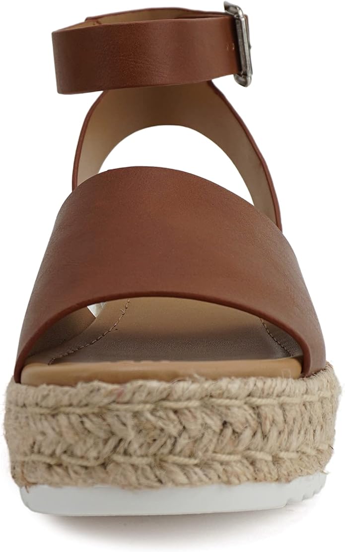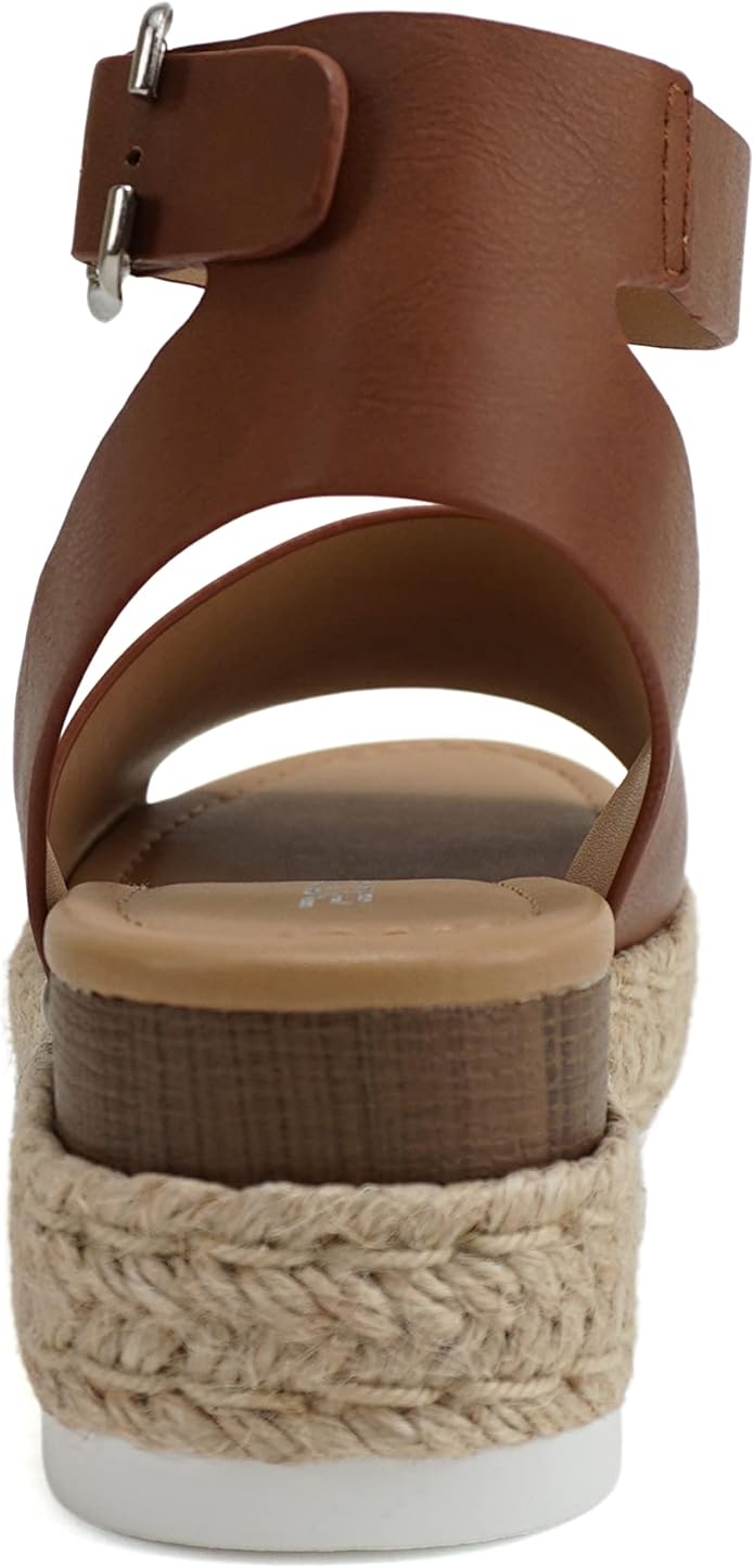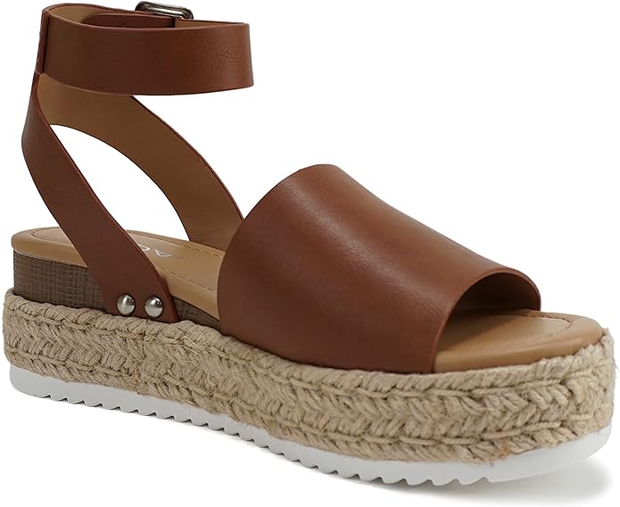 Soda Topic Cognac Pu Espadrilles Ankle Strap Studded Open Toe Wedge Heel Sandals