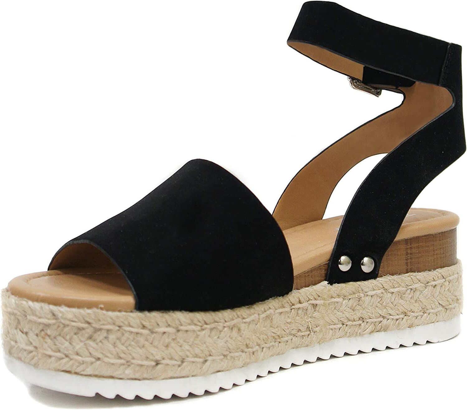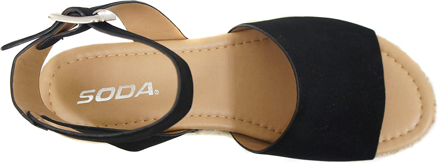 Soda Topics Black Nubuck Espadrille Ankle Strap Studded Platform Sandals